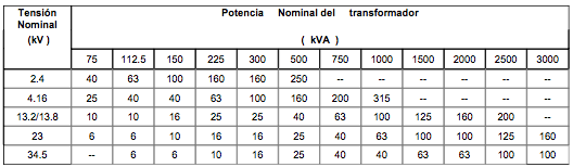 Otra forma de seleccionar los fusibles de las subestaciones compactas es determinar lo siguiente